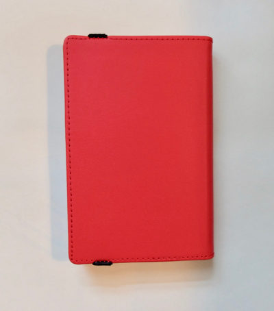 I also noticed that the elastic closure is attached in an unusual way– it goes all the way over the top and bottom of the cover and is stitched on, and presumably glued under the back cover. Maybe this is stronger than the way most elastics are attached through holes in the back cover, but it seemed like it might cause the stitching to come loose over time. There is no pocket in the back.