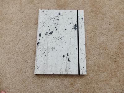 I love wire-o bindings for work notebooks, where I want to have the option of folding the cover back. These have a fun pattern on the cover, stamped in gold to match the wire. The pages within are lined and perforated for easy removal. I did not do pen tests on the wire-o notebook. The list price of this notebook is $13. Similar designs are available on Amazon.