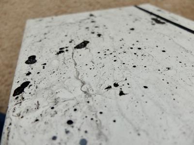 The paper inside is a creamy white, fairly smooth. The weight is not specified but it is not very thick. Here again fountain pens work fairly well with no bleedthrough but some feathering. I did not test watercolor paints but this paper is probably better for dry media.