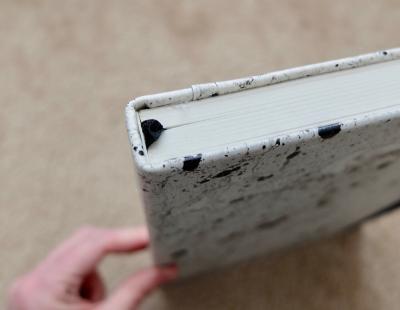 The Velvet journal has a beautiful indigo tie-dye pattern. This one is called Shibori Stripe, inspired by Japanese textiles. This small size measures about 4 x 6″, but it’s quite thick so will fit better in a bag than a pocket. There is a pretty big cover overhang but it kind of goes with the thickness and square corners.
