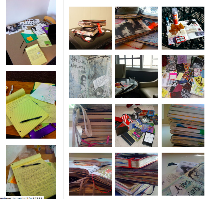 Not only did I find a rather large number of notebooks, I discovered that there’s kind of grey area between these two styles, so I ended up arranging them in a sort of continuum of variations, from thicker softcover notebooks, through thinner squared-spine ones, to the thinnest single-signature ones with stitched or stapled bindings.