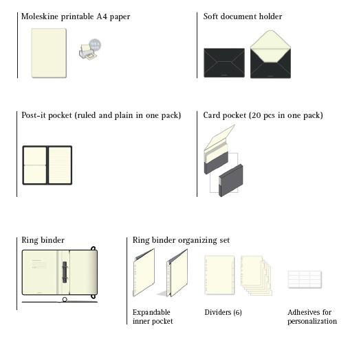 …Folio is a collection of top quality large Moleskine formats, A4 and A3. Now 6 new items have been added, conceived for professionals who love to personalize their own desks and give value to them, in functional and aesthetic terms. It is also a set of tools Moleskine lovers can use to build their own “portable offi ce”, to represent themselves in all occasions and