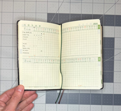 At some point in the last few months, I hinted that I’d be trying something new this year for the notebook that I use for my job. After many years of consistently using large-ish wire-o bound notebooks (see examples in these posts: Finishing a Work Notebook , My Latest Work Notebooks, New Job, New Notebook), last year I used a pocket size Pagem planner (see 2024 Pagem Planner Review) and quite enjoyed it. It made me realize I could make do with a smaller page size, and since I had a nice pocket size Filofax that I wanted to use more actively, (see Vintage Filofax Modification) I decided to make that my work notebook for 2025.