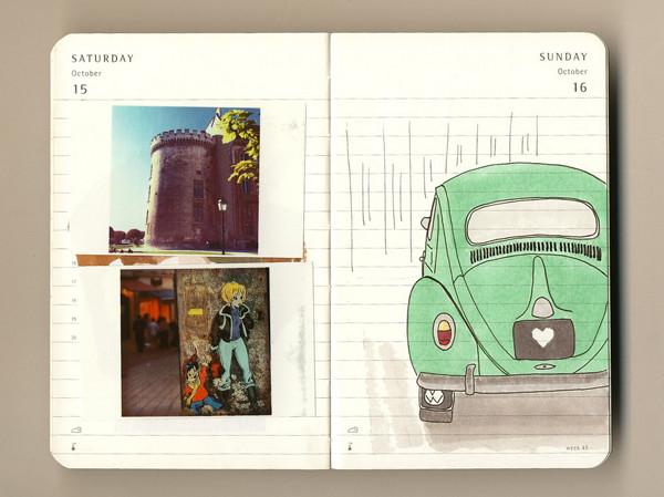 [Above] is a photo of the whole collection: several Moleskines (including one City notebook that was nice in concept but didn’t have enough freeform space for writing), a few Field Notes for shorter trips, and several Rhodia Rhodiarama notebooks. The latter is probably still my favorite, although the slightly larger format of the Field Notes Signature is very nice (I just wish it had a few more pages). The Hello Kitty notebook was my first travel journal, used on my first trip to Japan (and my first time outside the US). Disappointingly, it’s the least interesting of all my travel journals. I guess I was so overwhelmed with being in a new country that I hardly wrote anything! Since then, however, I have been to many other countries and cities, and I learn more about how to be a better travel journal keeper each time I travel.